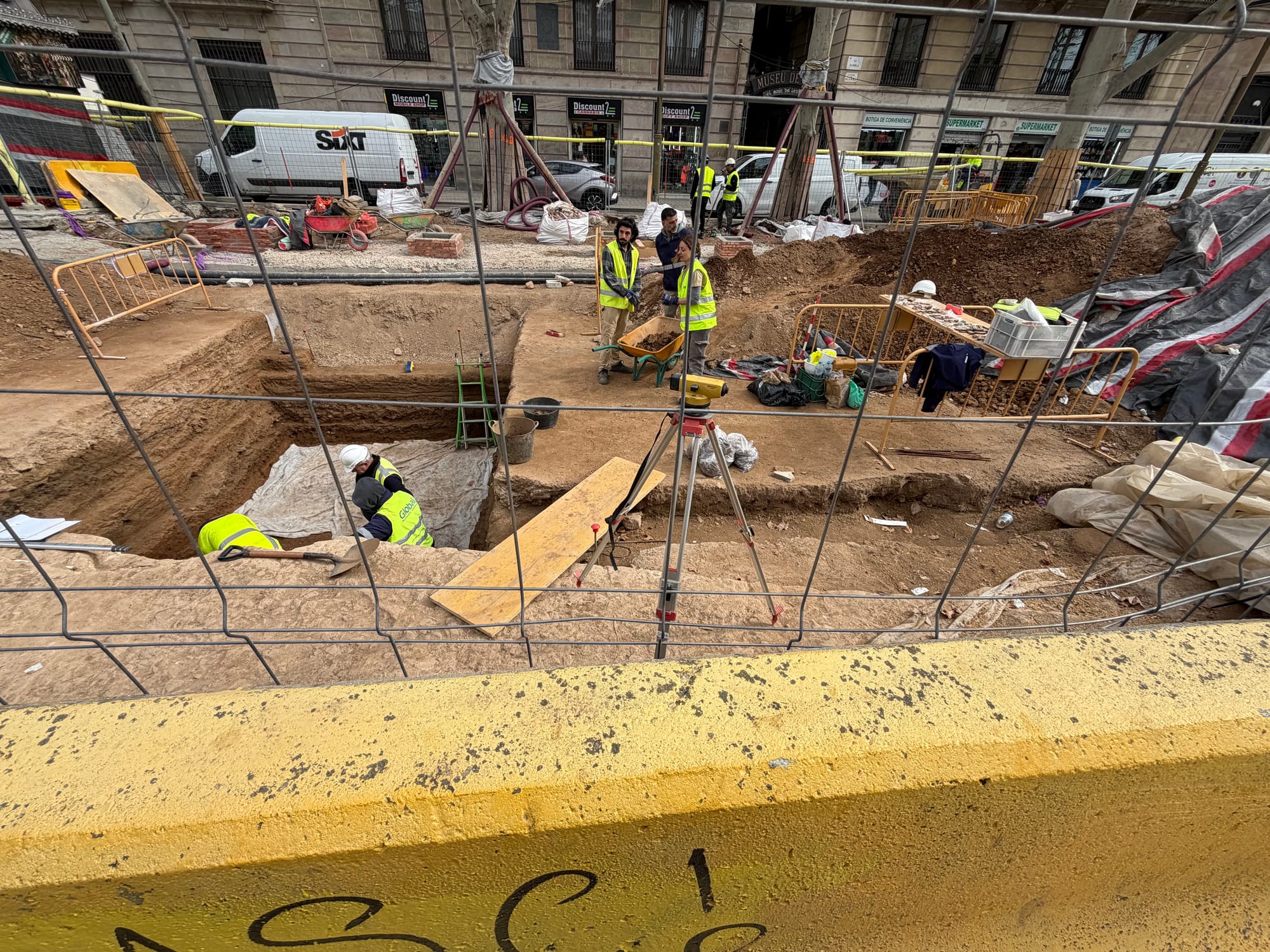 We came across construction on our street. Looks like they hit an archaeologically significant site. Construction work has stopped in that area. There is a team shifting though the dirt. It appears they found some pottery.