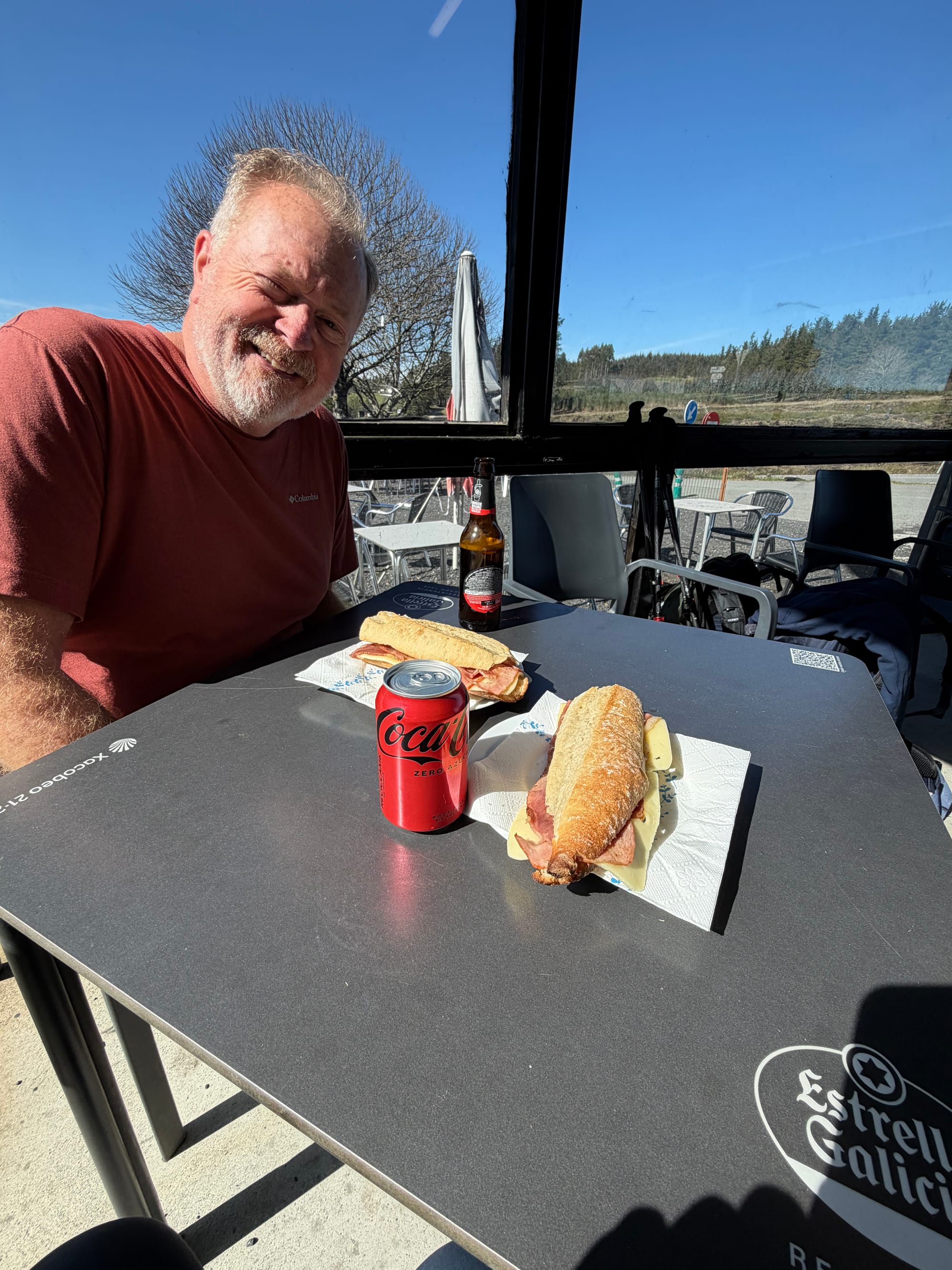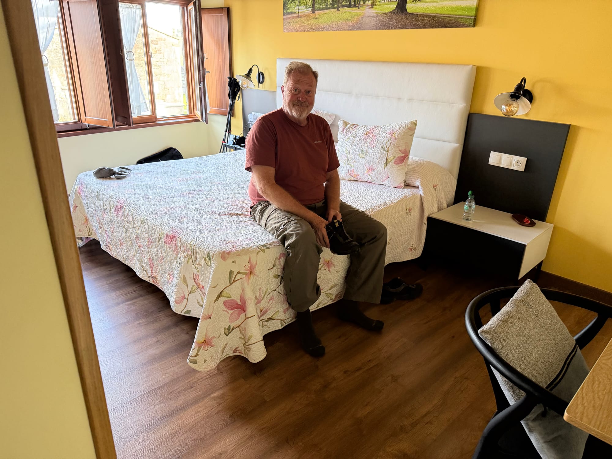 Lunch was at one of the only two places open today. That was our main meal. Bacon and cheese sandwiches with the last of our Pringles. We carried a pasta packet with us to make for dinner. Our German friends shared their fried potatoes and scrambled eggs with us too. No restaurants open here in Eirexe (Airexe). The innkeeper is very sweet and wanted to help everyone out with their food.