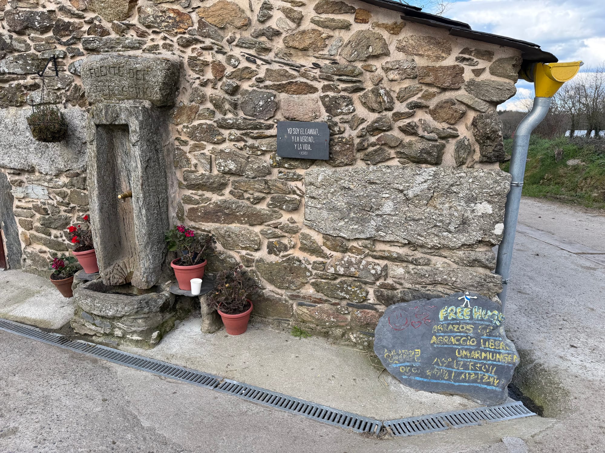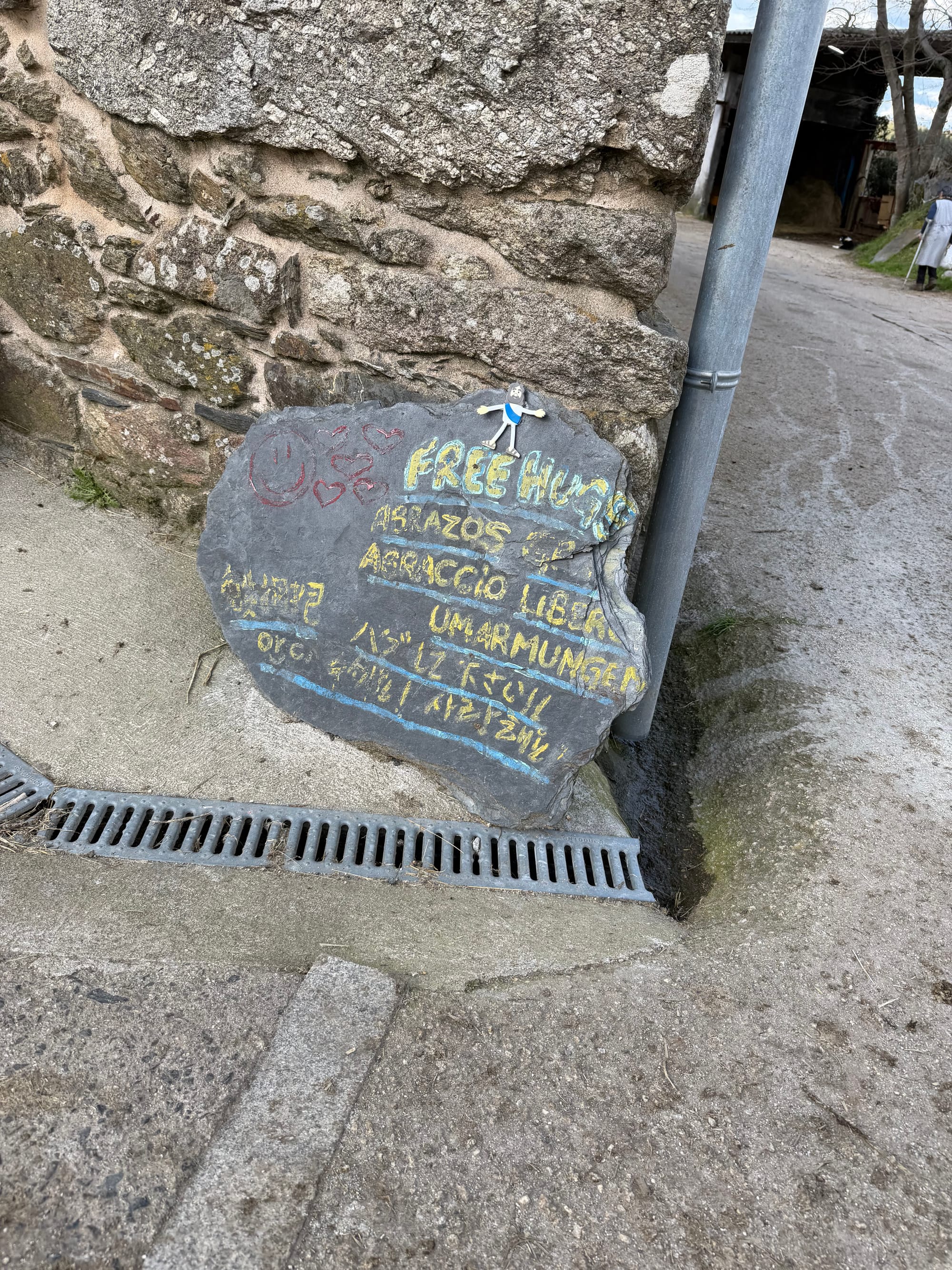We met loads of other pilgrims today. Today, we definitely the busy day out there. USA, England, Germany, Korea, Mexico, Italy and Spain. The youngest is a baby that is hiking with her parents. We enjoyed dinner with them. We also saw a large group of about 50 middle school age kids that are doing the Camino as a field trip. Some interesting characters on the trail.