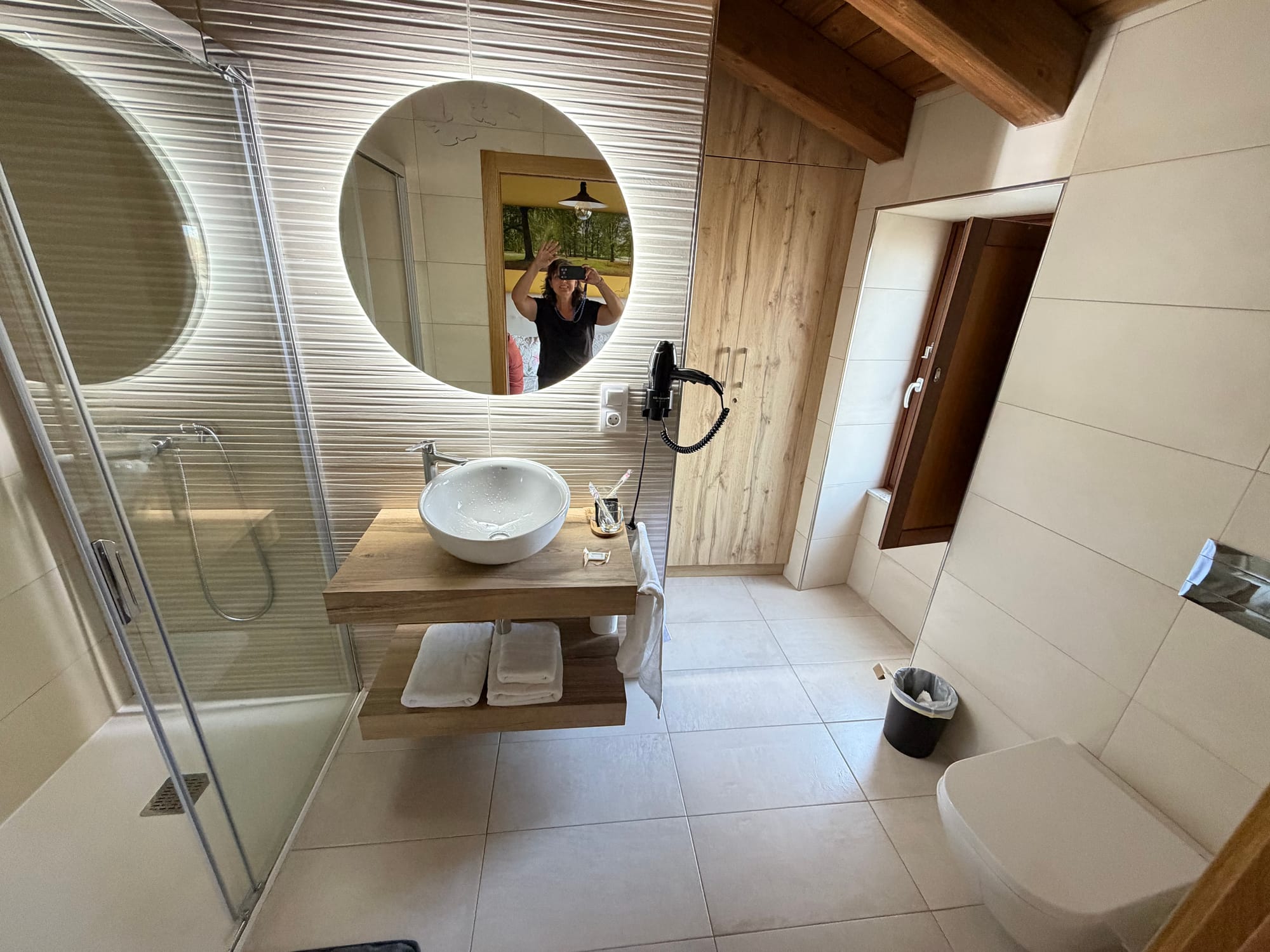 The inn is wonderful old building and very modern inside. We are next to the Church of St. James and can see it from our window.