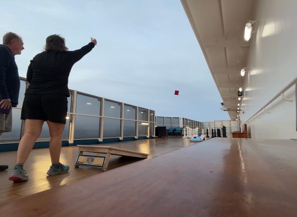 Cornhole: Kasey 5-1-1 vs Tina 1-5-1 (W-L-T) We don’t know how to end a tie. Besides, we have our rules and can’t remember all the scoring.