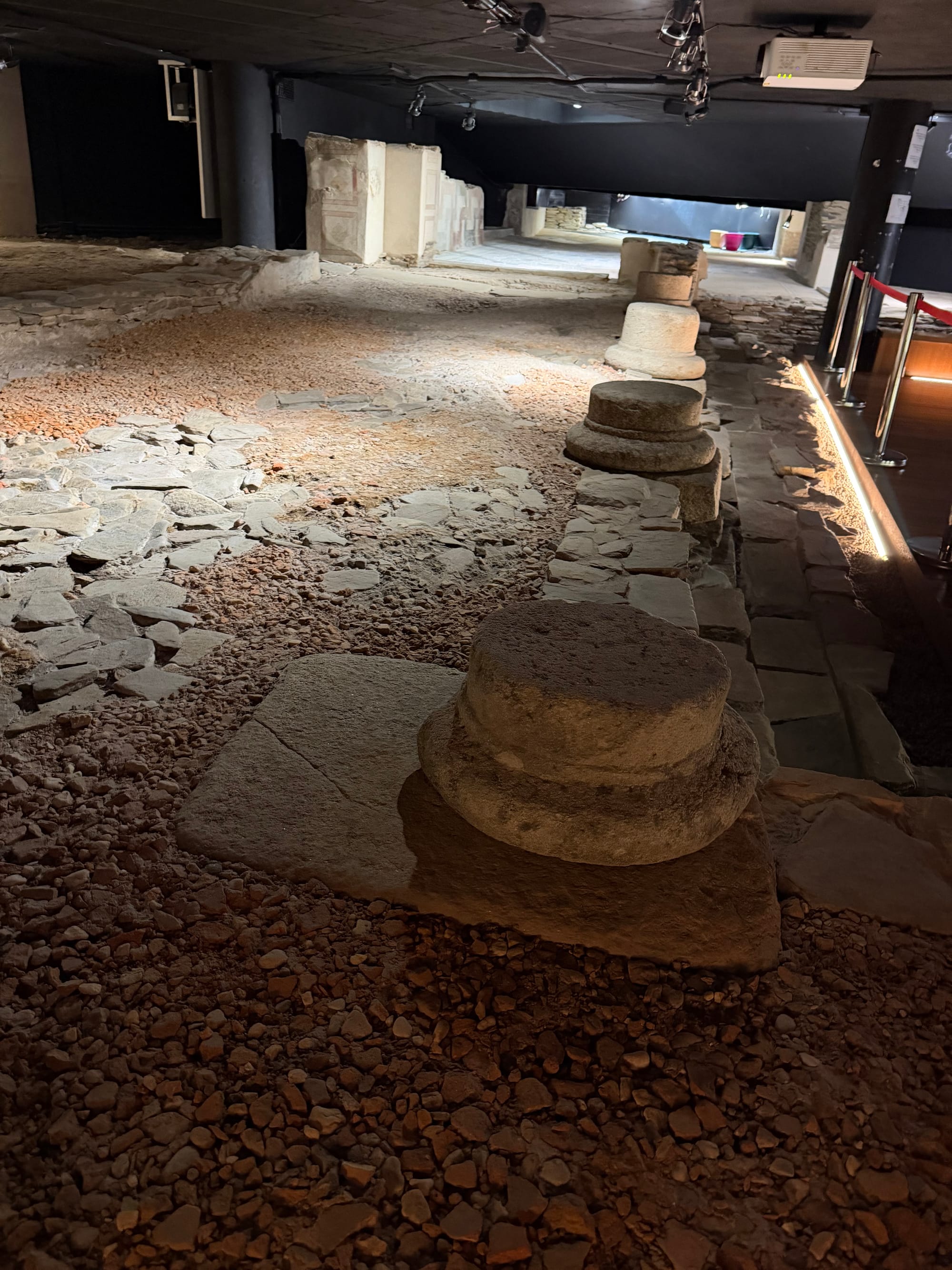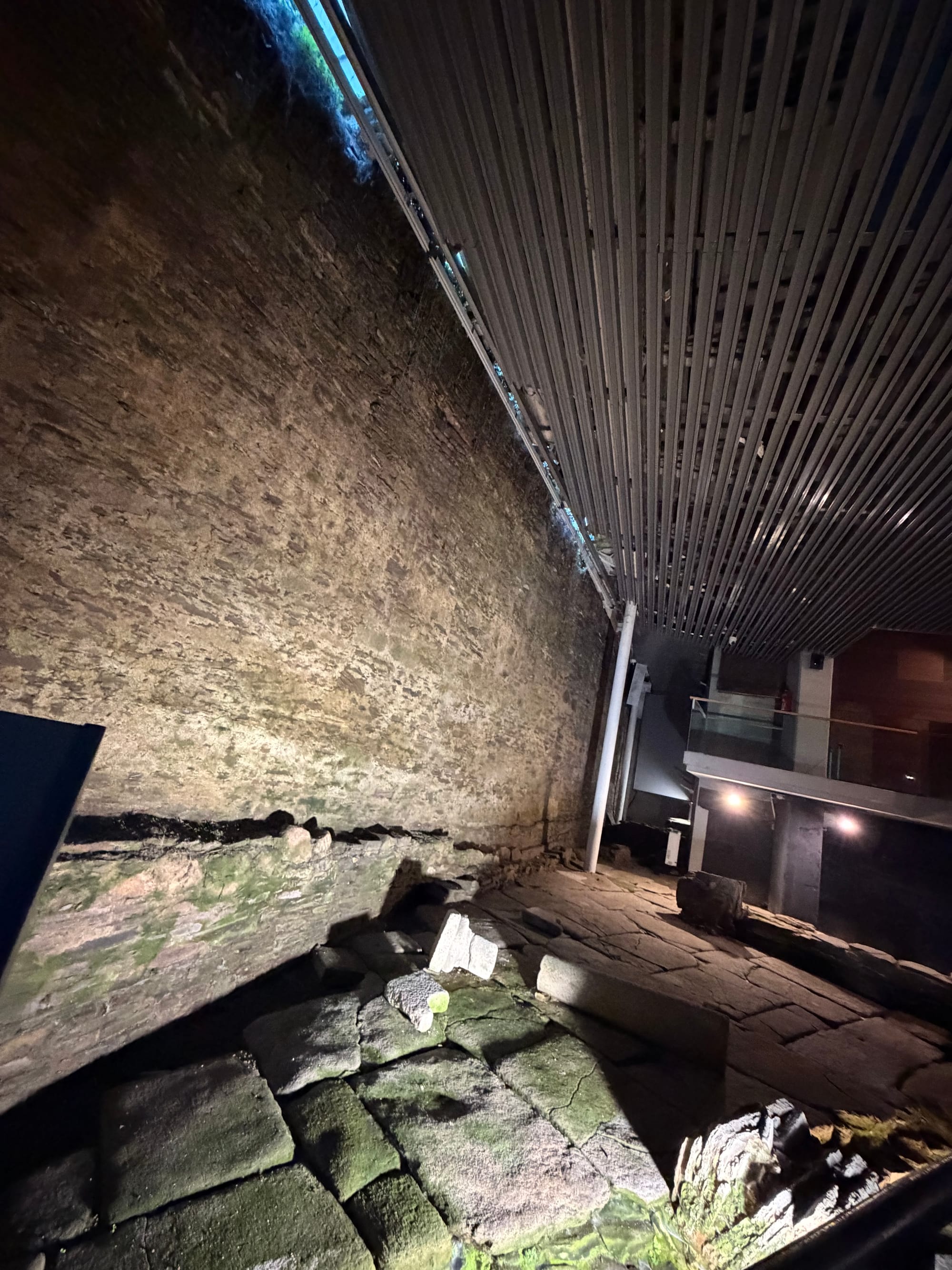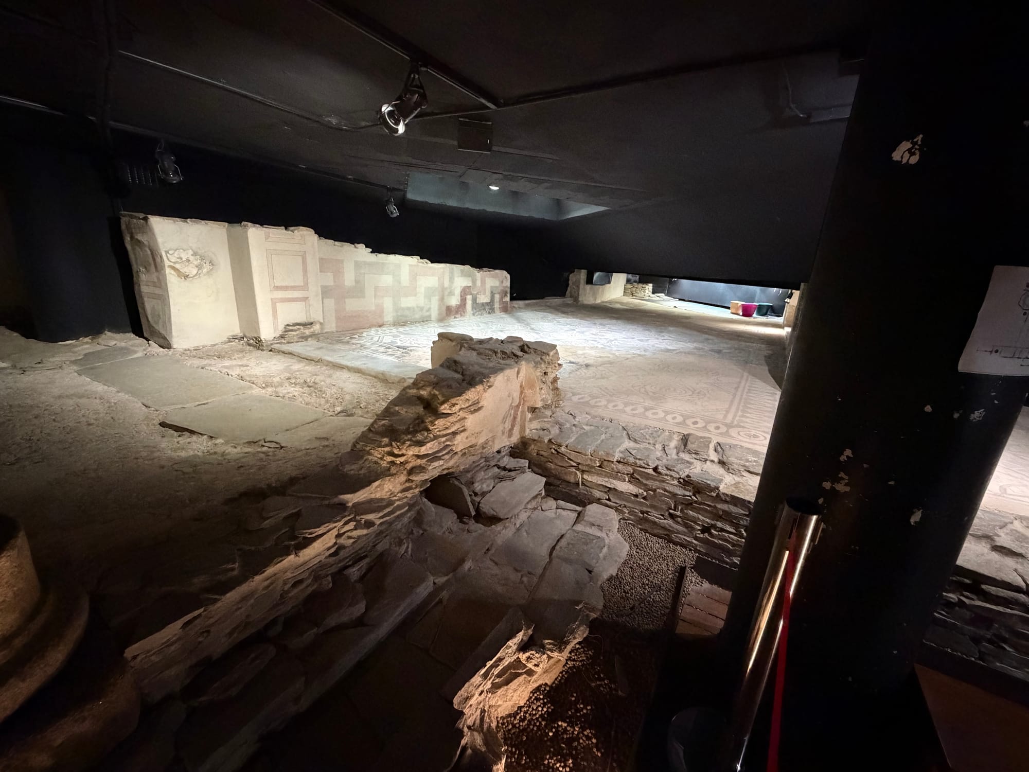 After visiting the train station, we walked more of the wall. We checked out the Casa dos Mosaicos Museum. The House of Mosaics is an impressive Roman archaeological site located in the heart of Lugo. These are the remains of a Roman domus from the 3rd-4th century AD, with geometric mosaics. We walked down a set of stairs to find this hidden underground.