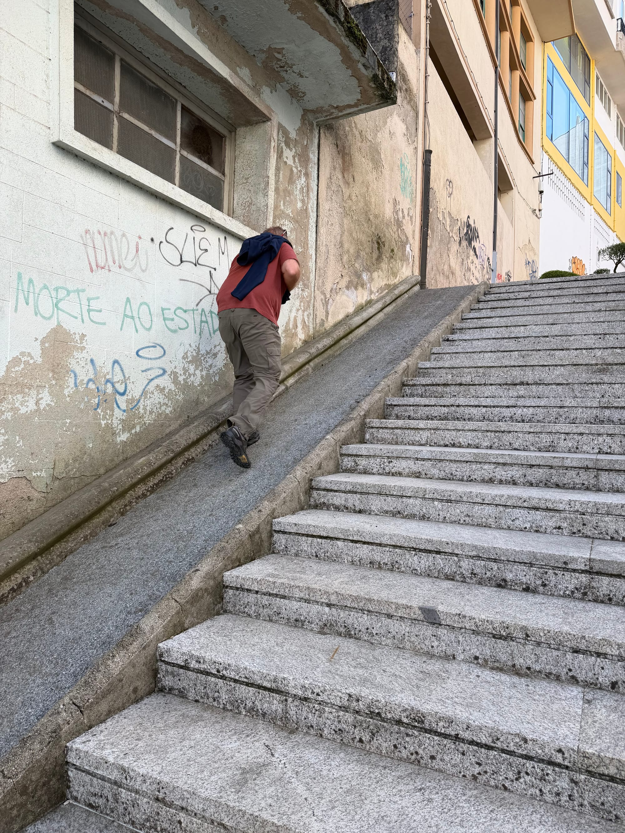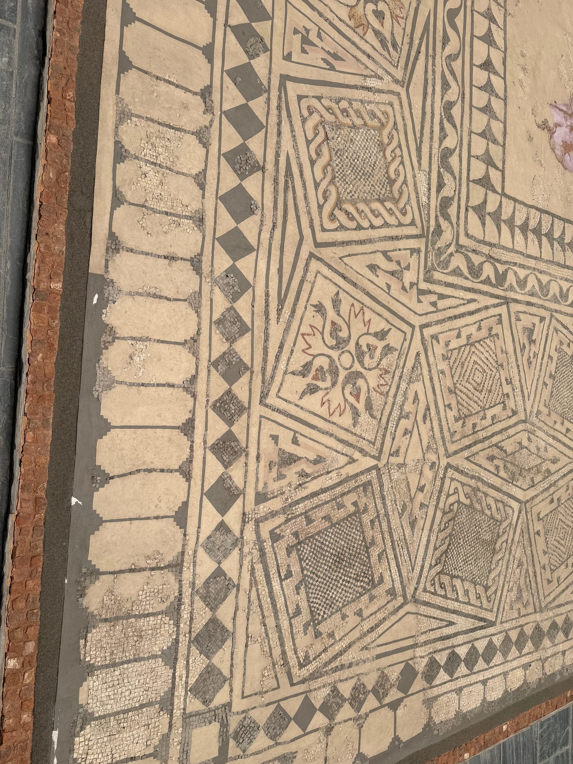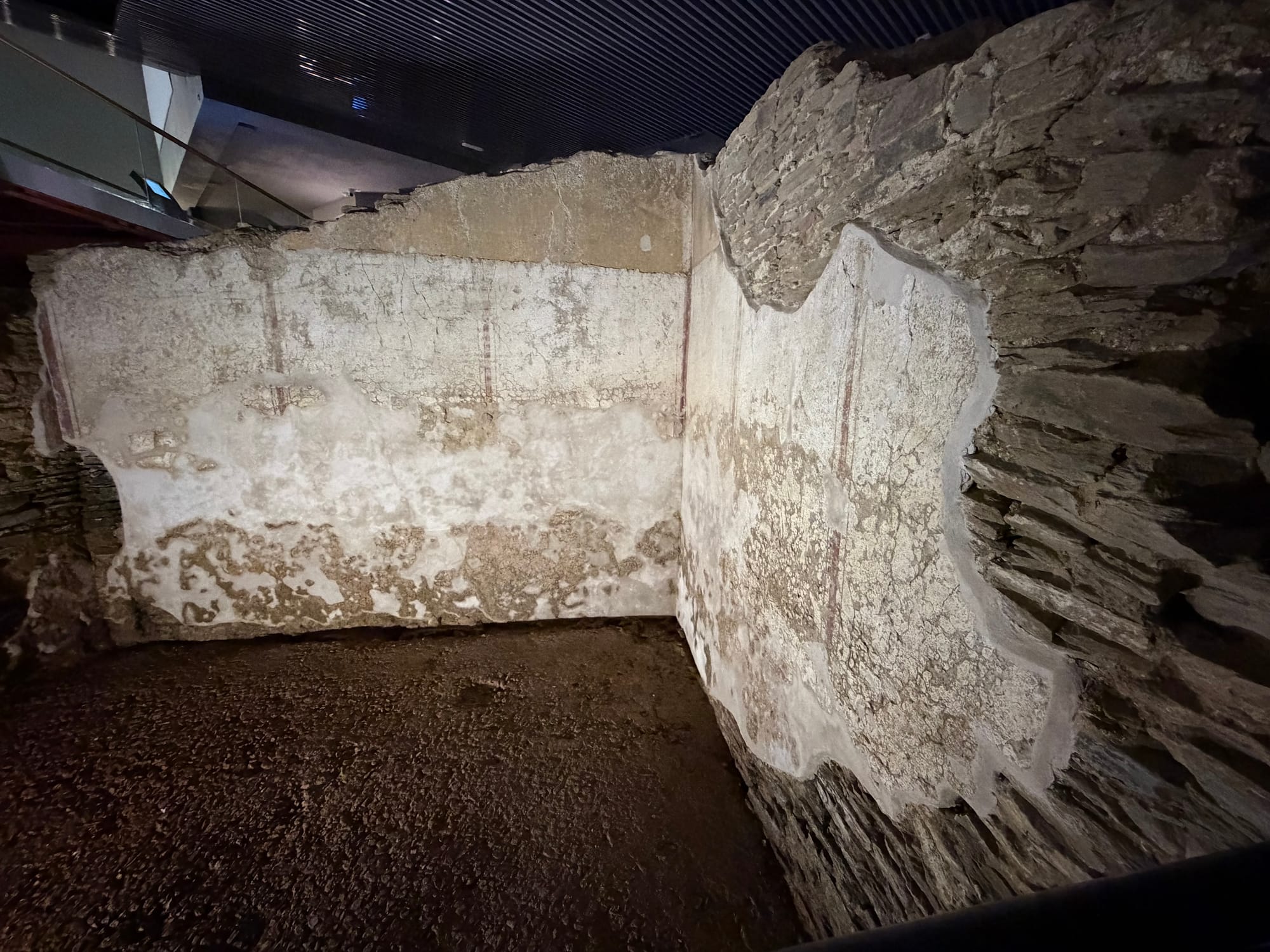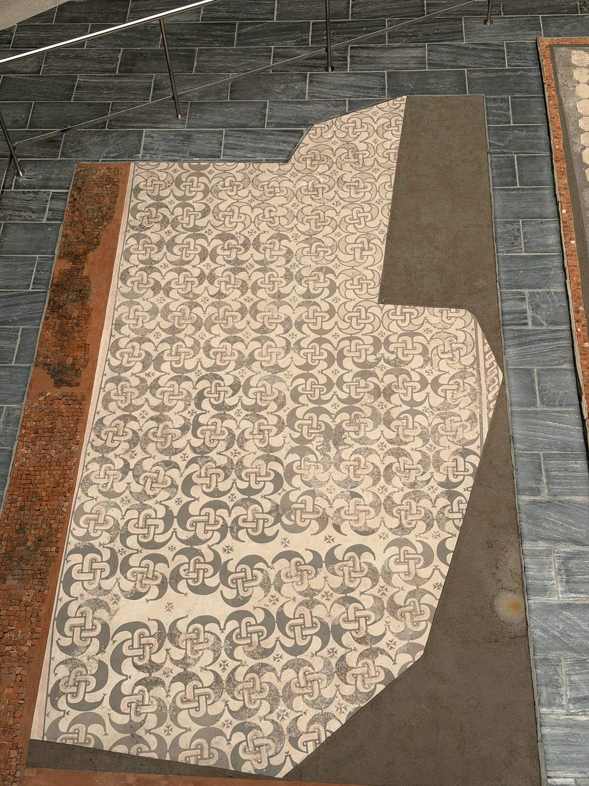 After visiting the train station, we walked more of the wall. We checked out the Casa dos Mosaicos Museum. The House of Mosaics is an impressive Roman archaeological site located in the heart of Lugo. These are the remains of a Roman domus from the 3rd-4th century AD, with geometric mosaics. We walked down a set of stairs to find this hidden underground.
