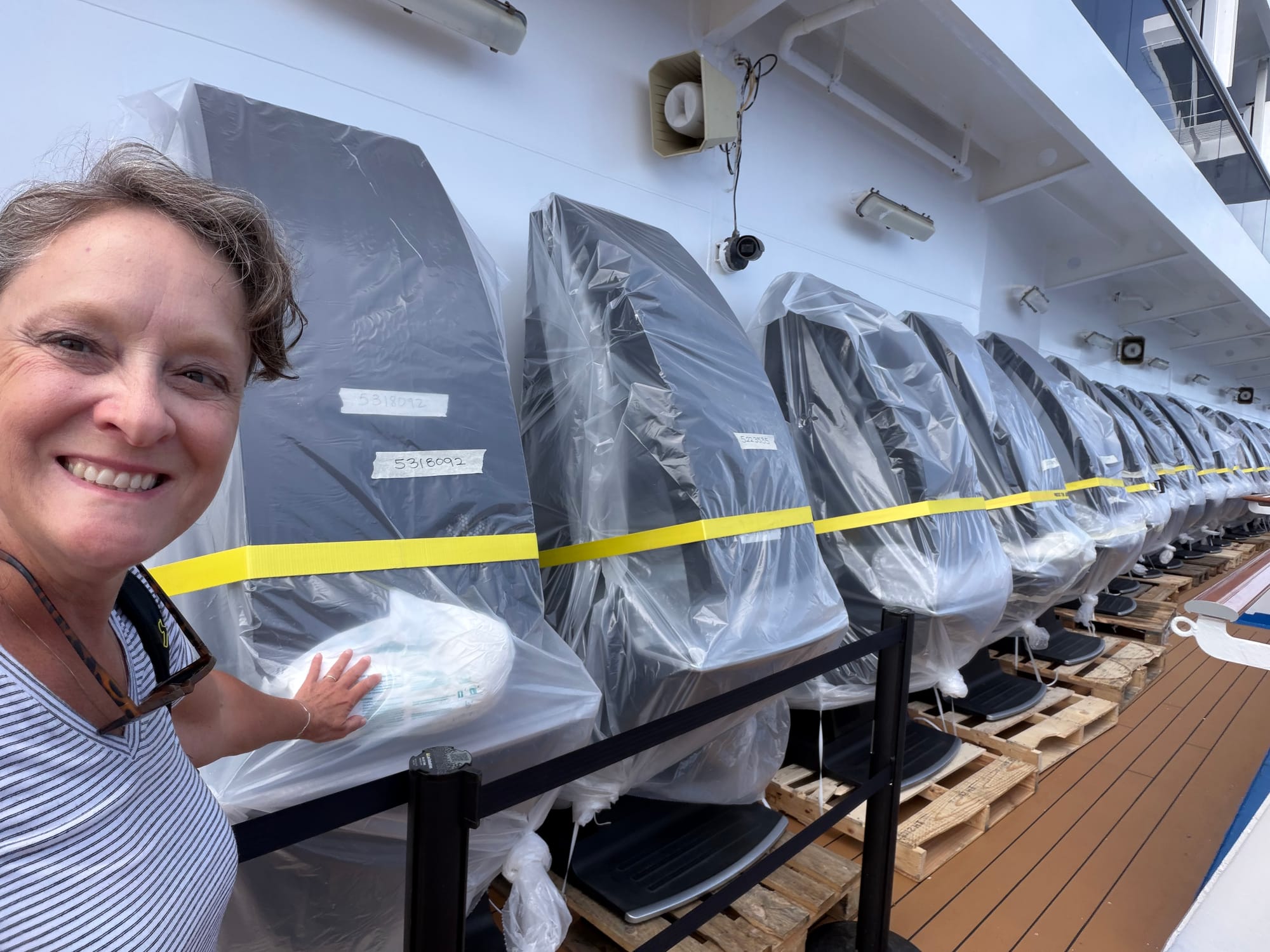 We have emptied out the slot machines from the atriu. They had to put them in shrink wrap, out on the pallets on the deck. Haha