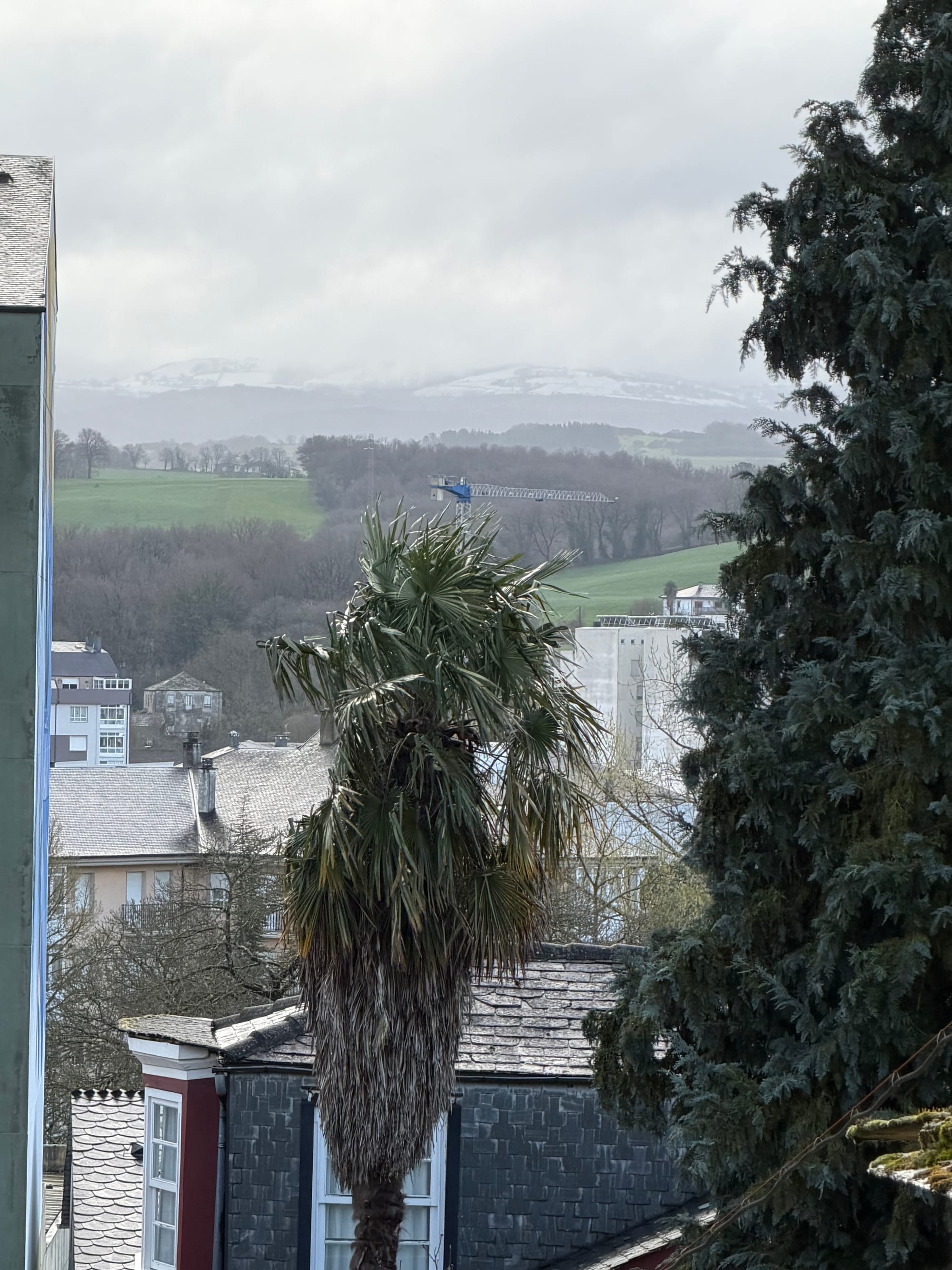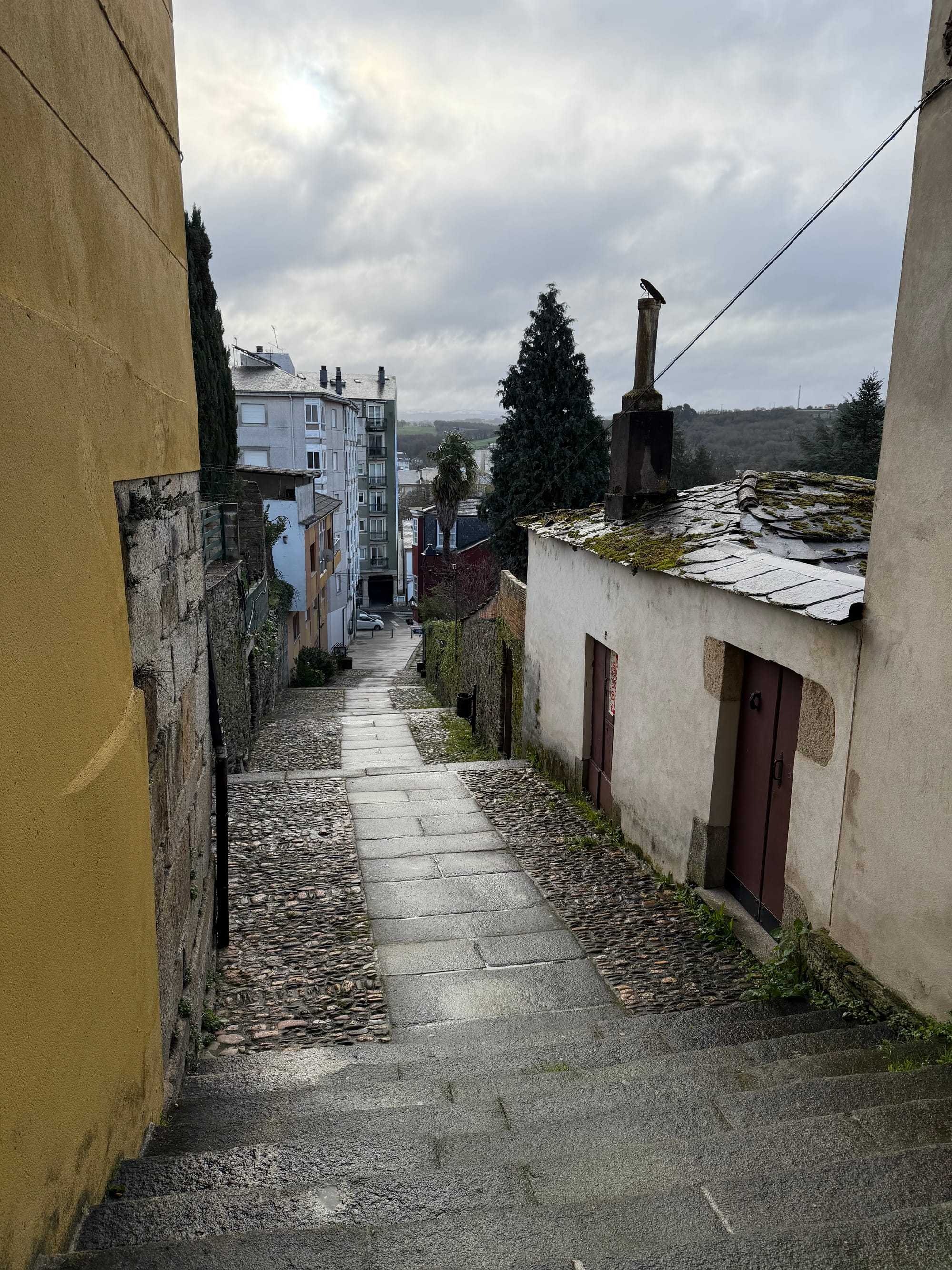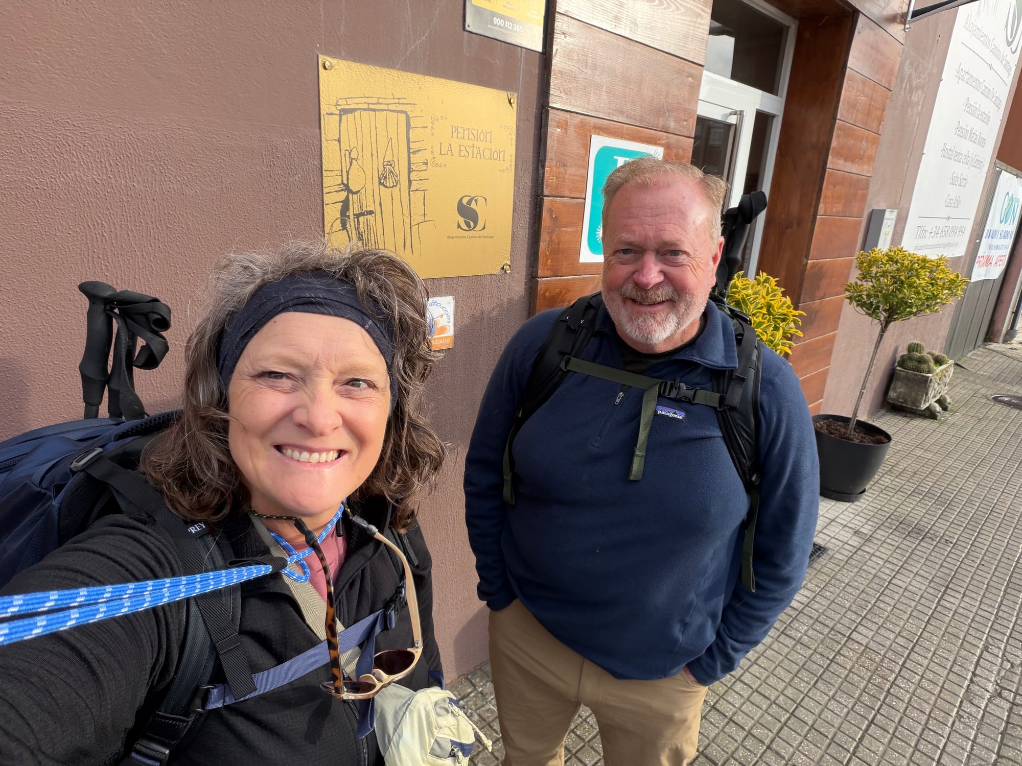 Sarria Pension, hill, churches, almost wrong way and cross.
