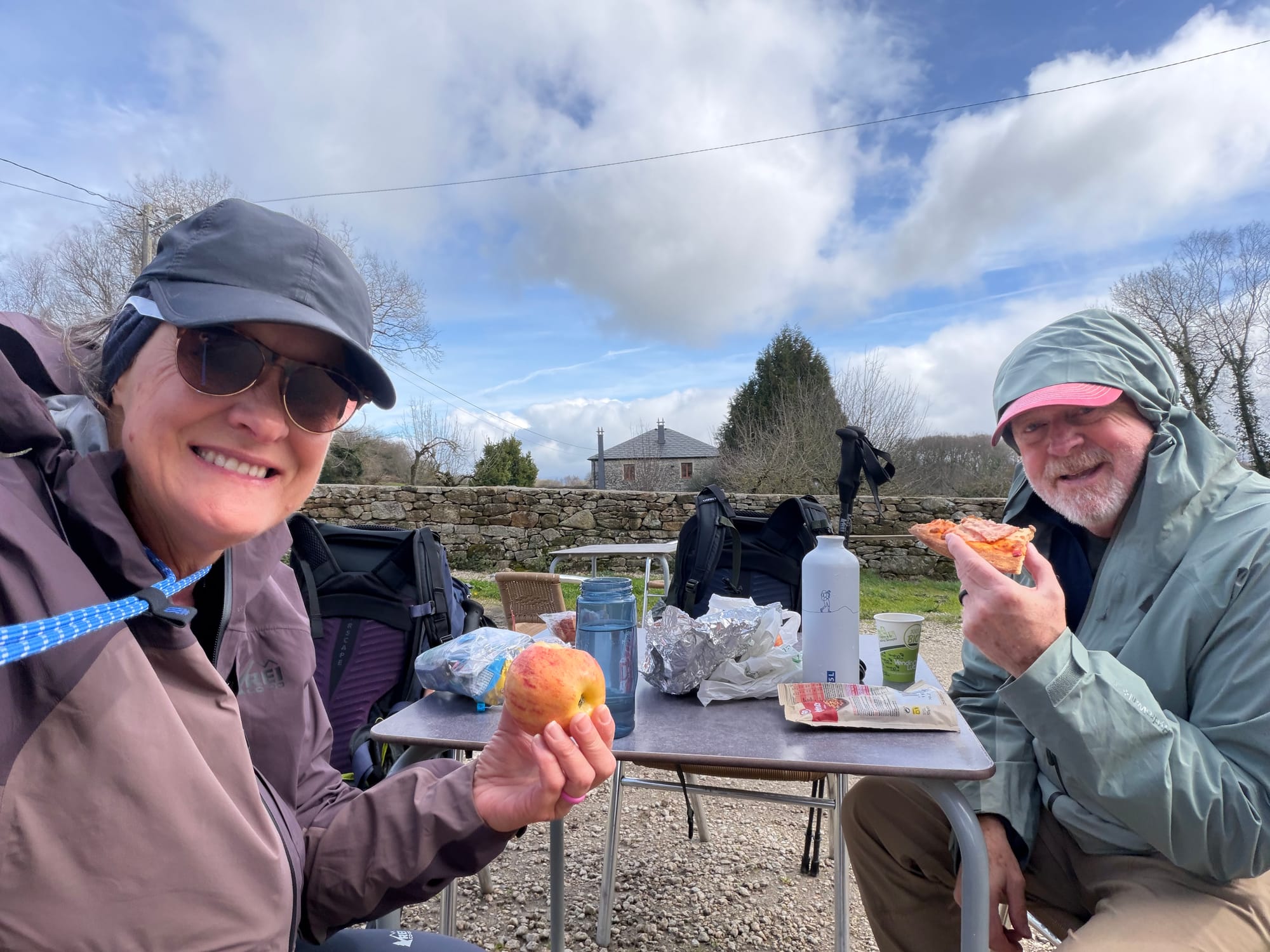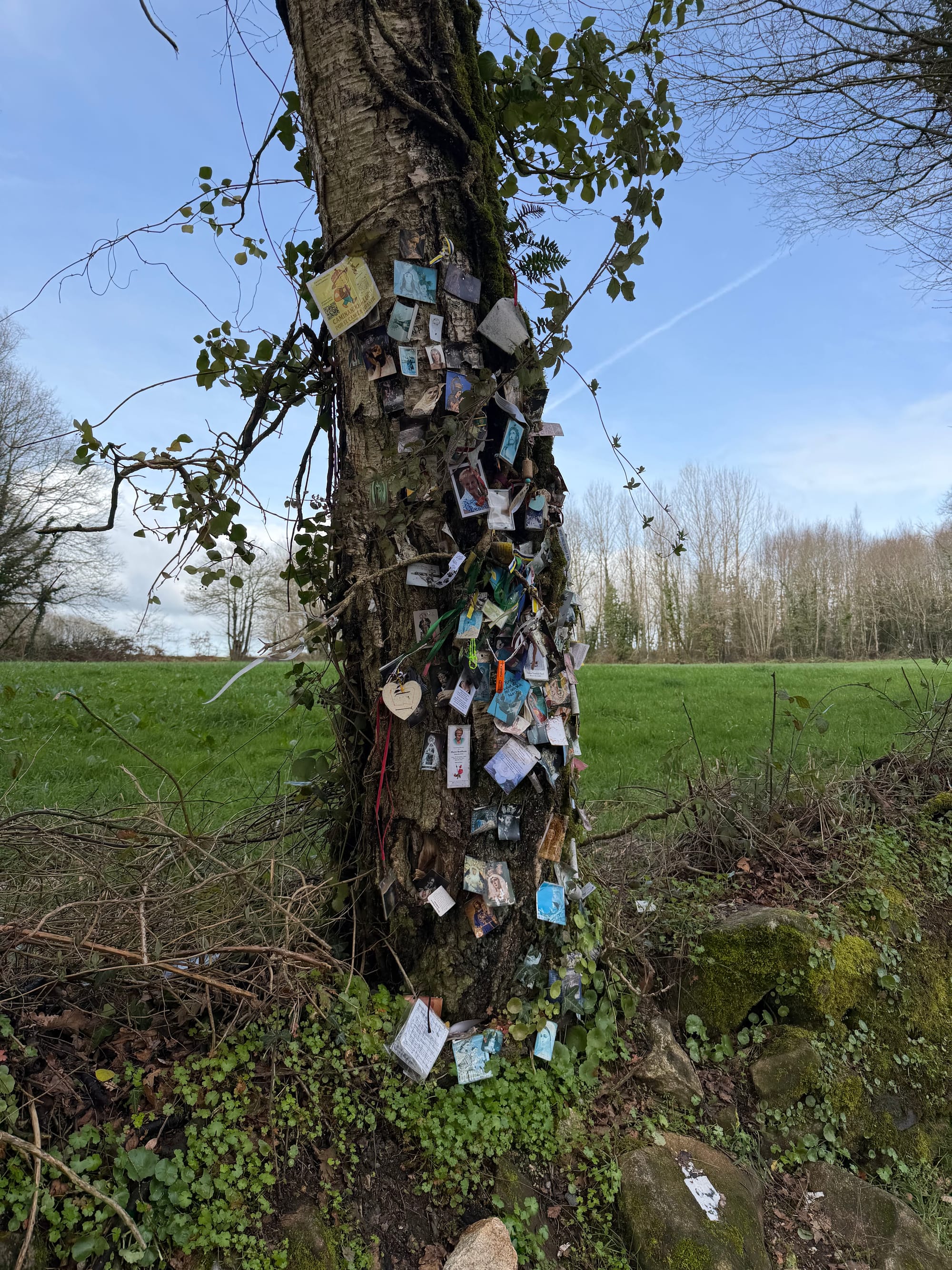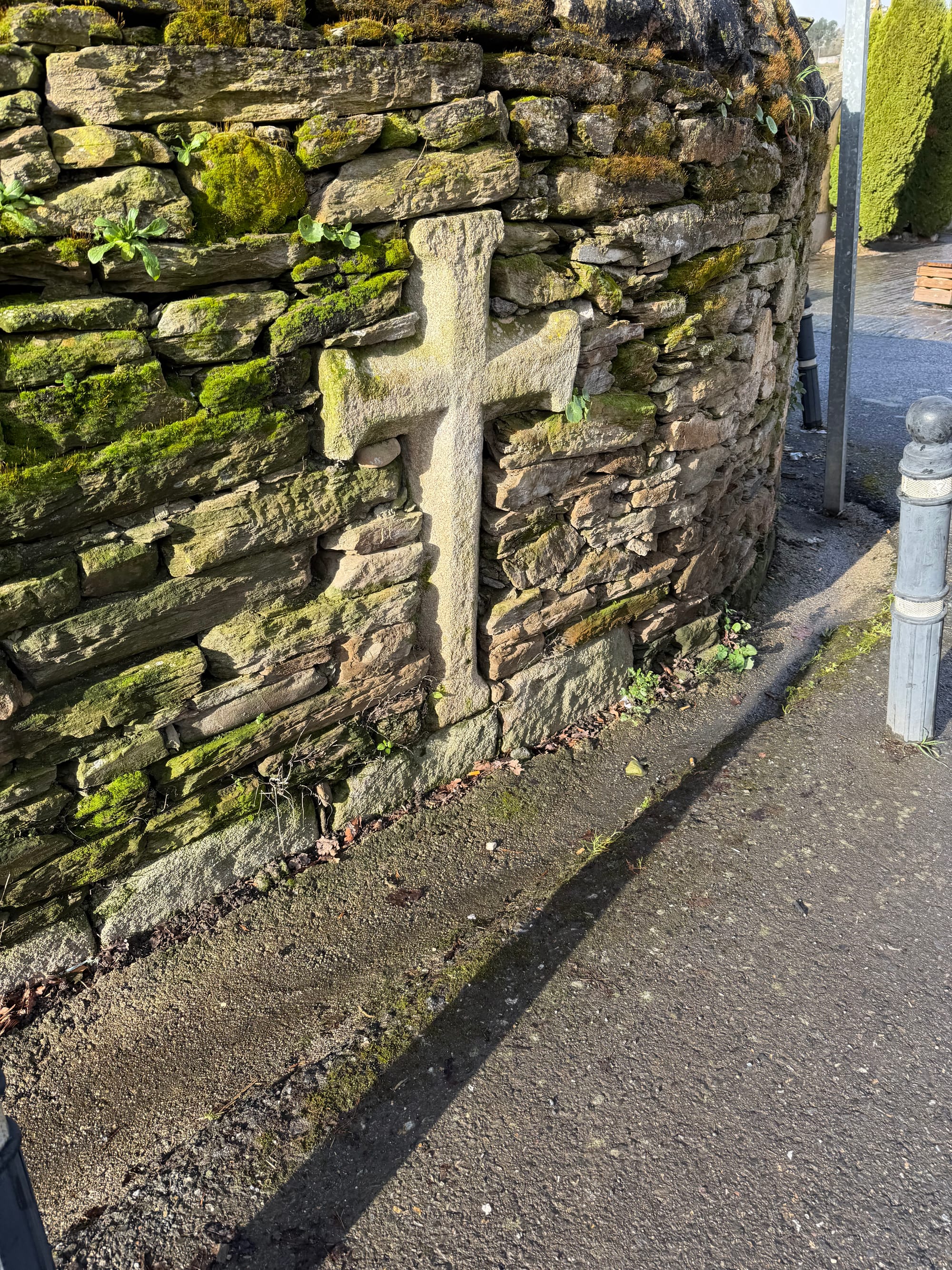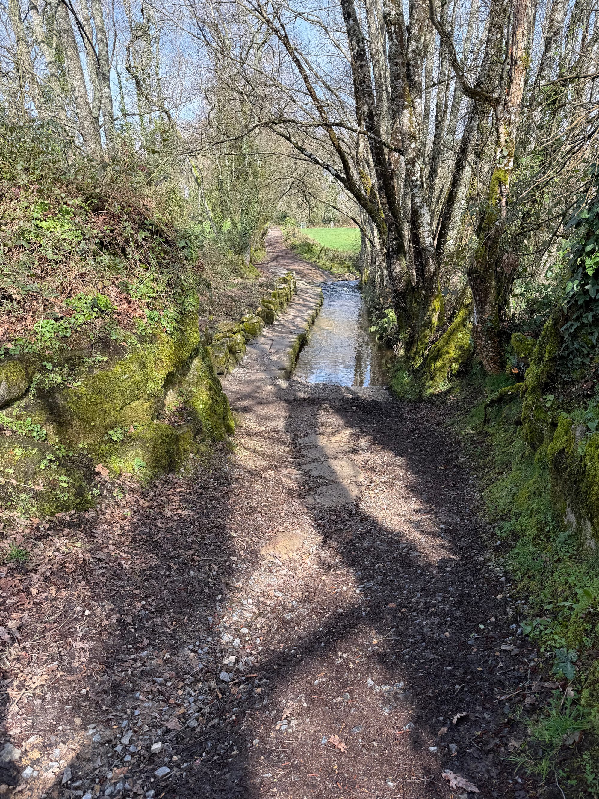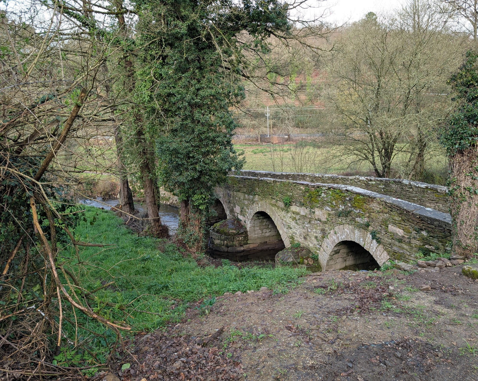 Church, cemetery, Roman bridge, choosing our route, railroad crossing, water crossing, gnarly tree and she’ll and open fields.
