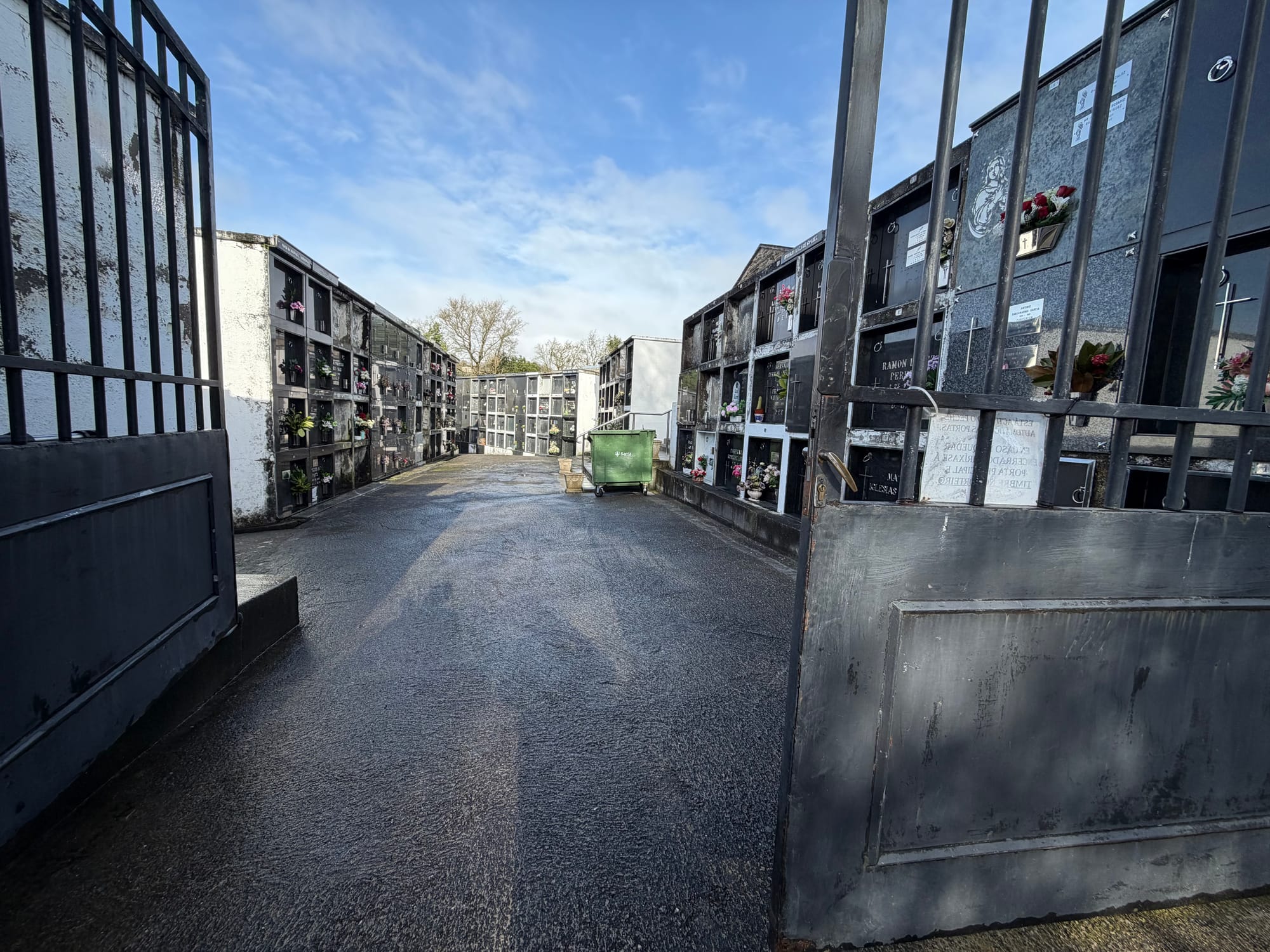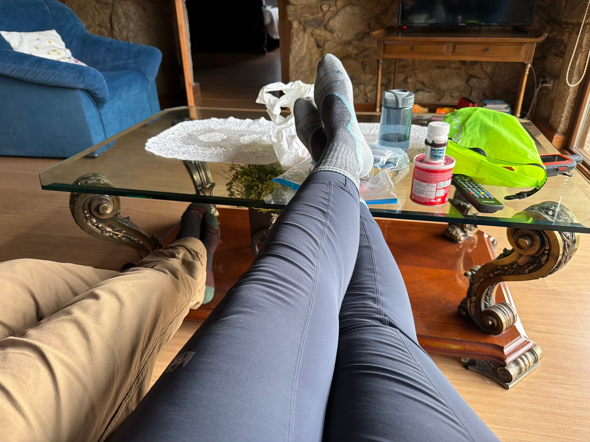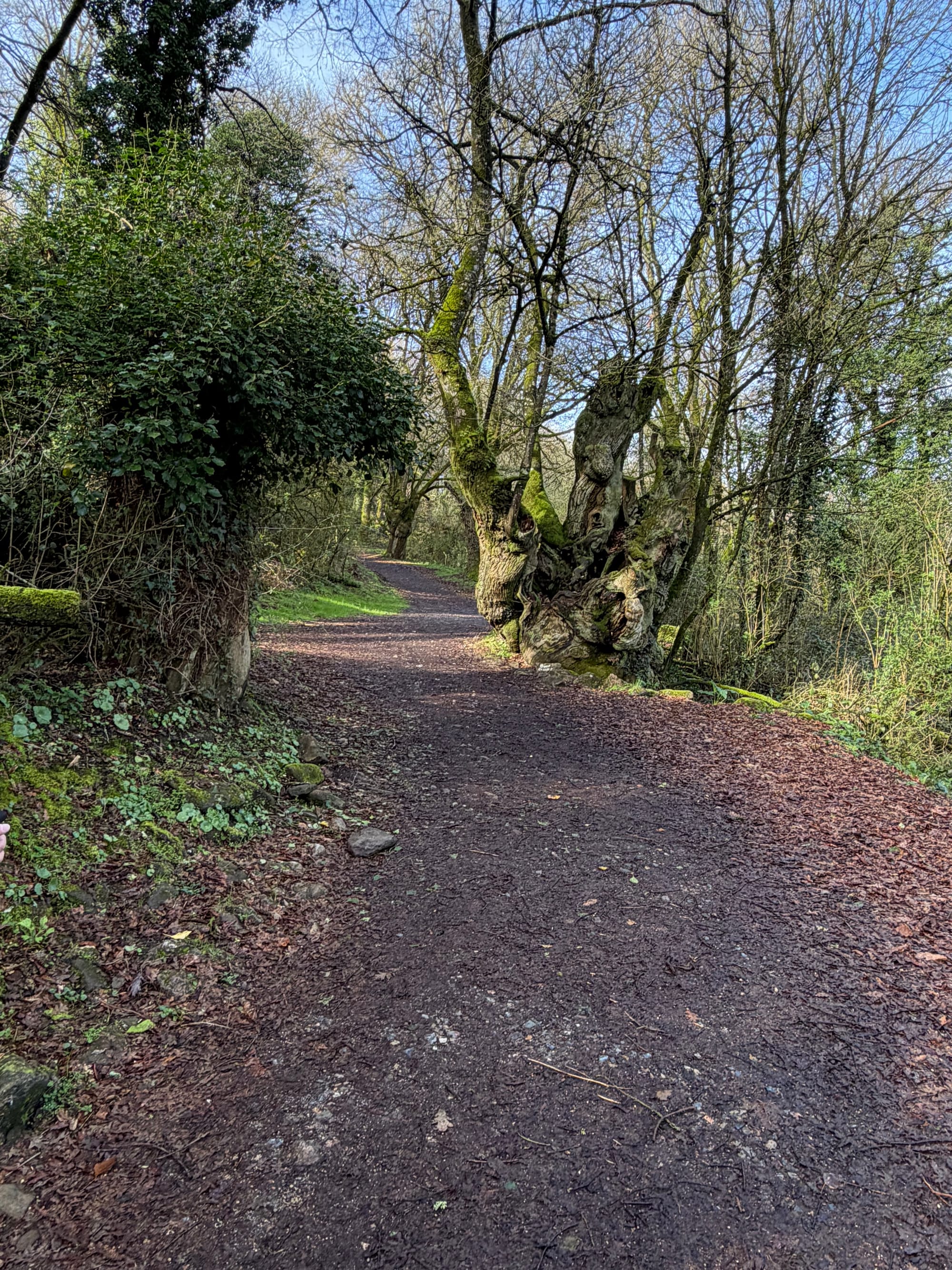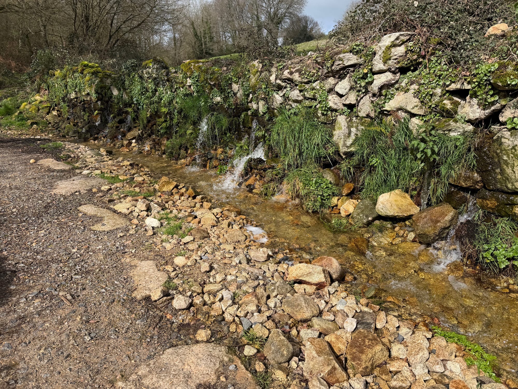 Church, cemetery, Roman bridge, choosing our route, railroad crossing, water crossing, gnarly tree and she’ll and open fields.