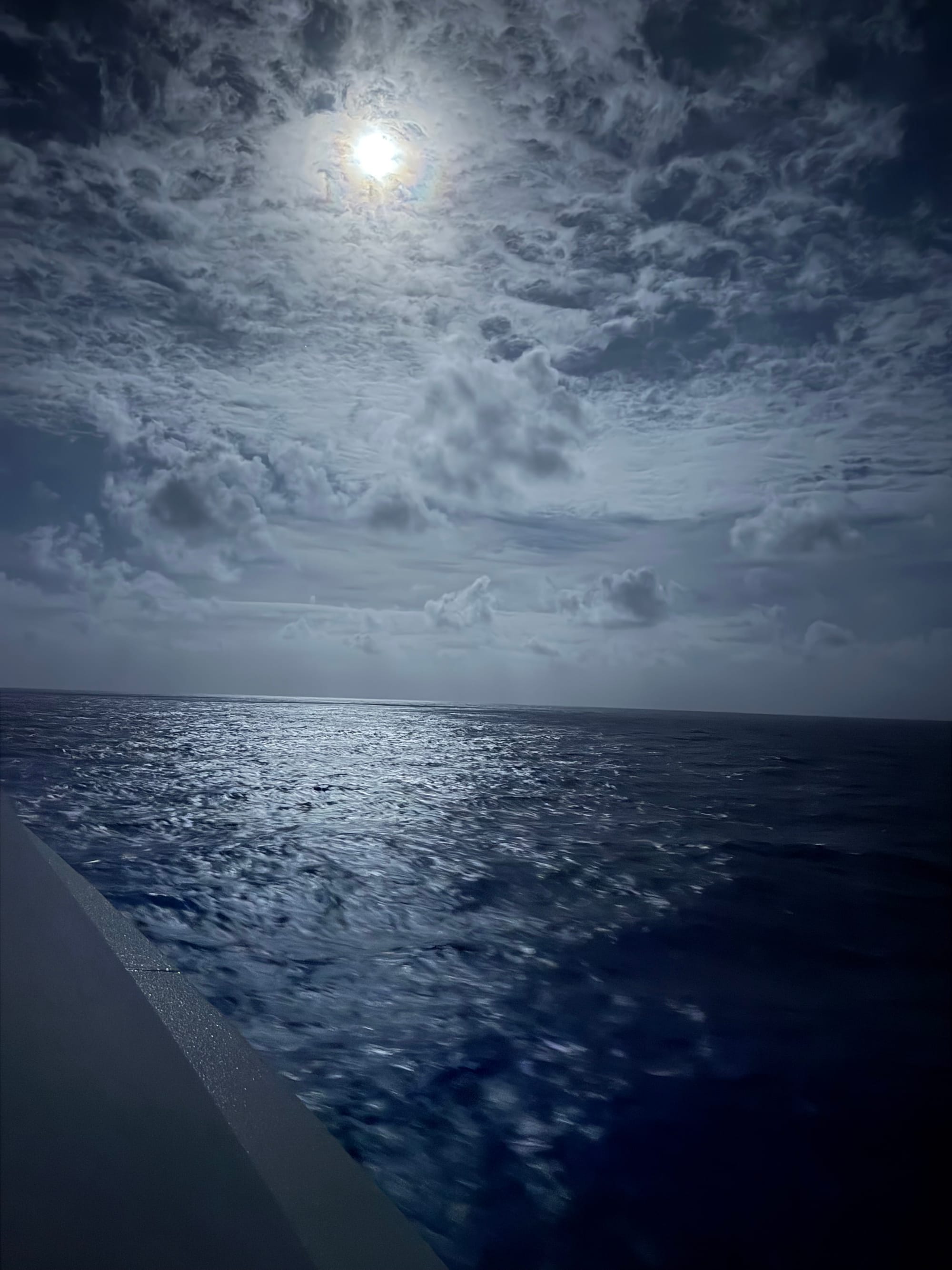 It’s a new month. It’s been 8 days at sea and now working on day 9. A full moon hanging around. And now they have ran out of Coke Zero… oh no!!!😟 I’ve got three left.